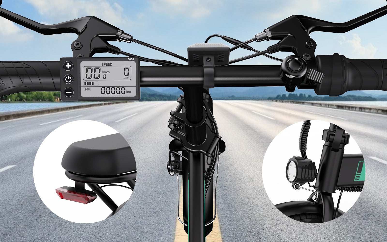 With the LED headlight and taillight design, you can have a bright ride at night. For your safety on night trips.